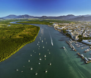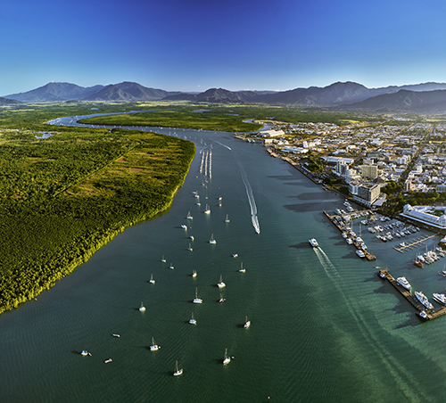 Tucked between World Heritage Rainforest and the Great Barrier Reef, Cairns is the perfect starting point for your tropical adventure with all the shopping, dining, entertainment, sporting events, adrenalin-pumping adventures and cultural experiences on offer. In less than an hour by boat you can be snorkelling or diving in the Great Barrier Reef and its islands, swim at the Esplanade Lagoon, sample tropical produce at a farmer’s market, shop ‘til you drop, or cruise around the marina. Glide over the rainforest on a Skyrail adventure or step back in time with a train ride to Kuranda, the village in the rainforest.