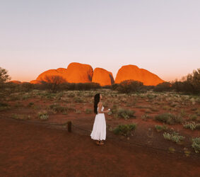 Kata Tjuta's colours change from rich reds, through to iridescent oranges, to burnt yellows and deep violets of sunrise and sunset.